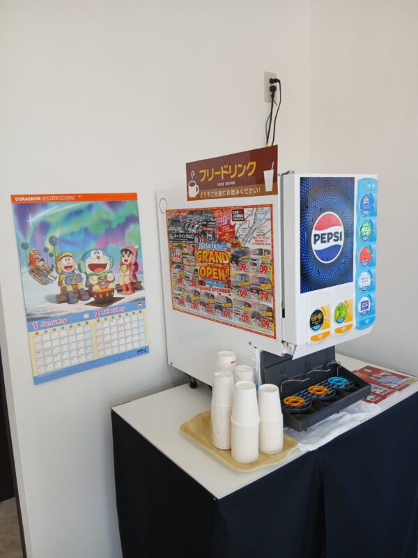 現在、店内では温かいお飲み物をご用意しています。 そのため、リラックスして車選びを楽しめます。