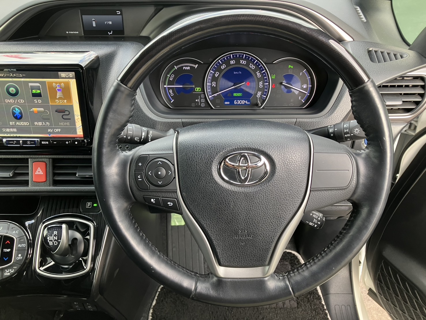 R1年式 トヨタ エスクァイアハイブリッド ハイブリッドGi プレミアムパッケージ ブラックテーラード 社外9インチナビ LEDヘッドライト 両側電動スライドドア ハーフレザーシート ドライブレコーダー 前席シートヒーター ステリングヒーター 【63,100㎞】 26-0339